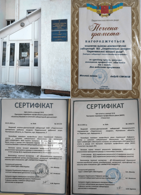 В лабораторії ведеться щоденний контроль якості всіх проведених досліджень. Достовірність і своєчасність лабораторних досліджень – відмінні риси діяльності клініко-діагностичної лабораторії КП «Пирятинська лікарня».